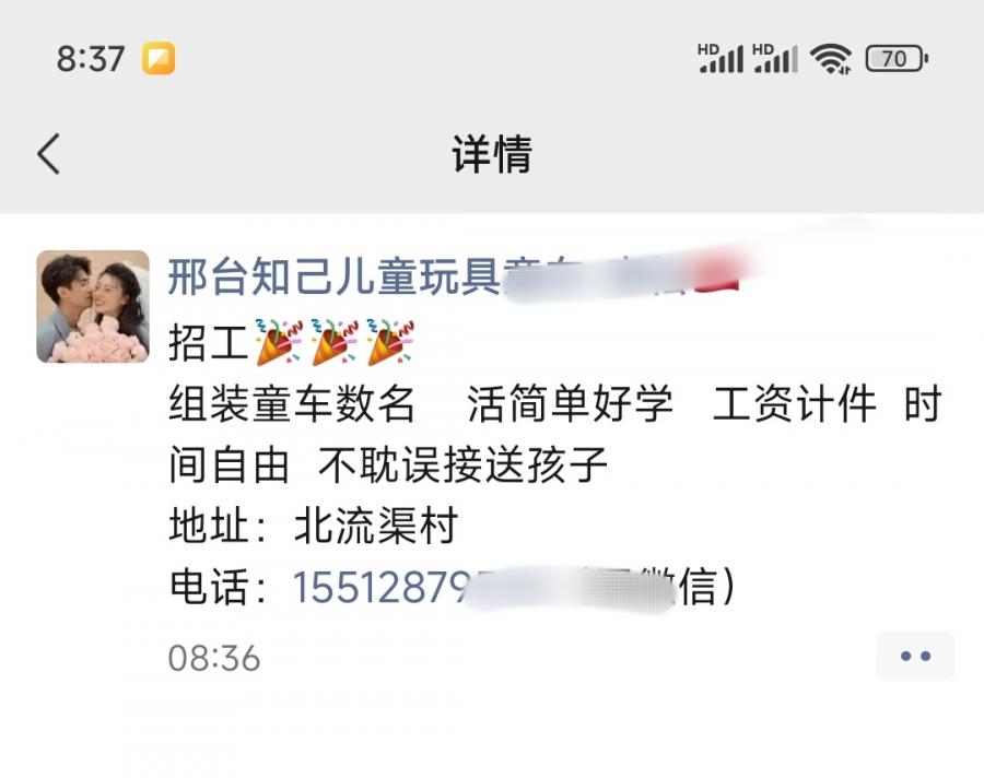 邢台知己儿童玩具招聘 组装童车数名 活简单好学 工资计件 时间自由-邢台平乡河古庙求职招聘,车间出租大全,河古庙外放活